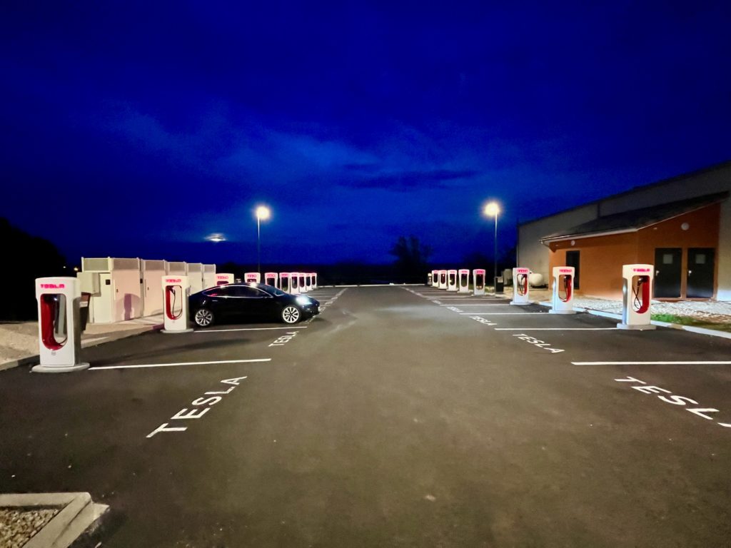 Mais parfois, ça commence à se tendre un peu, comme ici lors d’un départ en vacances : Il reste encore une place, mais la station est quasiment pleine et pendant notre recharge, nous avons vu 2 véhicules arriver et attendre qu’une borne se libère.